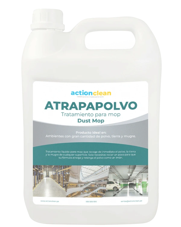 AtrapaPolvo – Dust Mop es un tratamiento de alta eficacia diseñado para la captura y retención inmediata de polvo, tierra y partículas finas en cualquier superficie dura. Su fórmula avanzada combina agentes absorbentes, humectantes y solventes de última generación que atraen el polvo como un imán, evitando que las partículas se dispersen y asegurando una limpieza más profunda y duradera.
